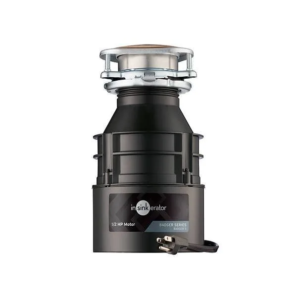 The InSinkErator Badger 5, 1/2 HP Garbage Disposal with power cord, offers a clean, hygienic, convenient and environmentally responsible way to rid your kitchen of food scraps quickly. Septic-safe for properly maintained septic systems and fitting easily and discreetly under the kitchen sink, this compact garbage disposal effortlessly grinds food waste into tiny particles that easily flush down the kitchen drain. Part of the InSinkErator Standard Series, the durable, functional, long-lasting, and budget-friendly choice for garbage disposals, the Badger 5 disposal with factory-installed power cord features a 1/2 HP, heavy-duty Dura-Drive induction motor with more jam-busting torque to power through everyday food scraps. The rugged, galvanized steel grind components with stainless steel swivel lugs offer long-lasting durability, and the compact design saves valuable under-sink space. This InSinkErator Badger garbage disposal is equipped with Lift and Latch technology for hassle-free sink connection, so you don’t have to hold the disposal with one hand while adjusting the mounting ring with the other. Your kitchen is the heart of your home, where you gather with family and other loved ones. The perfect complement to every kitchen since 1938, InSinkErator has been making products that aren’t just better for your family, they’re better for your world. Simple solutions from InSinkErator help you Kitchen Better.