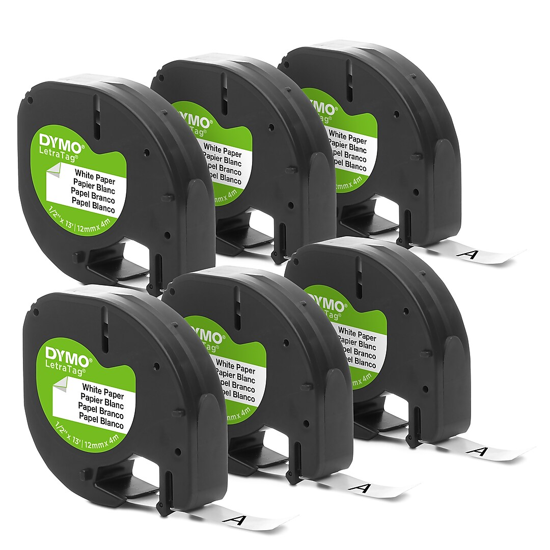 Restock your office supplies with this Dymo LetraTag label tape. It comes with an easy-peel split back, so it’s easy to use. The white paper label tape is wipeable and tear-resistant, and the sharp black text stands out on items. This label tape is ideal for keeping your home or office in order. Stock up on this staple to keep all of your supplies organized.