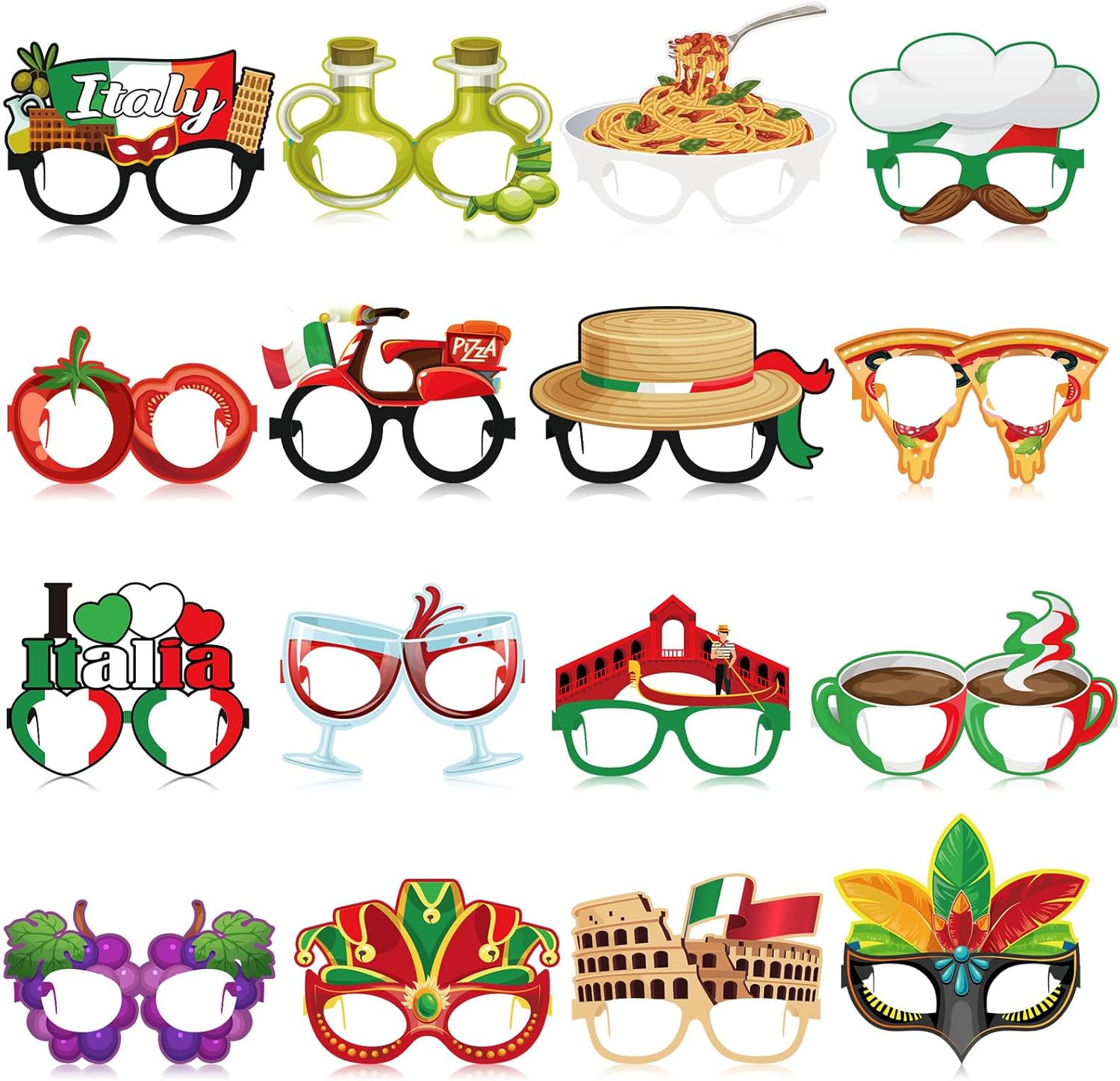 - Abundant Set for Celebrations: Includes 32 pairs of Italian paper glasses across 16 Italy-themed styles, so guests can pick and share. Ideal for birthdays, school events, and cultural parties to create a lively, photo-ready atmosphere