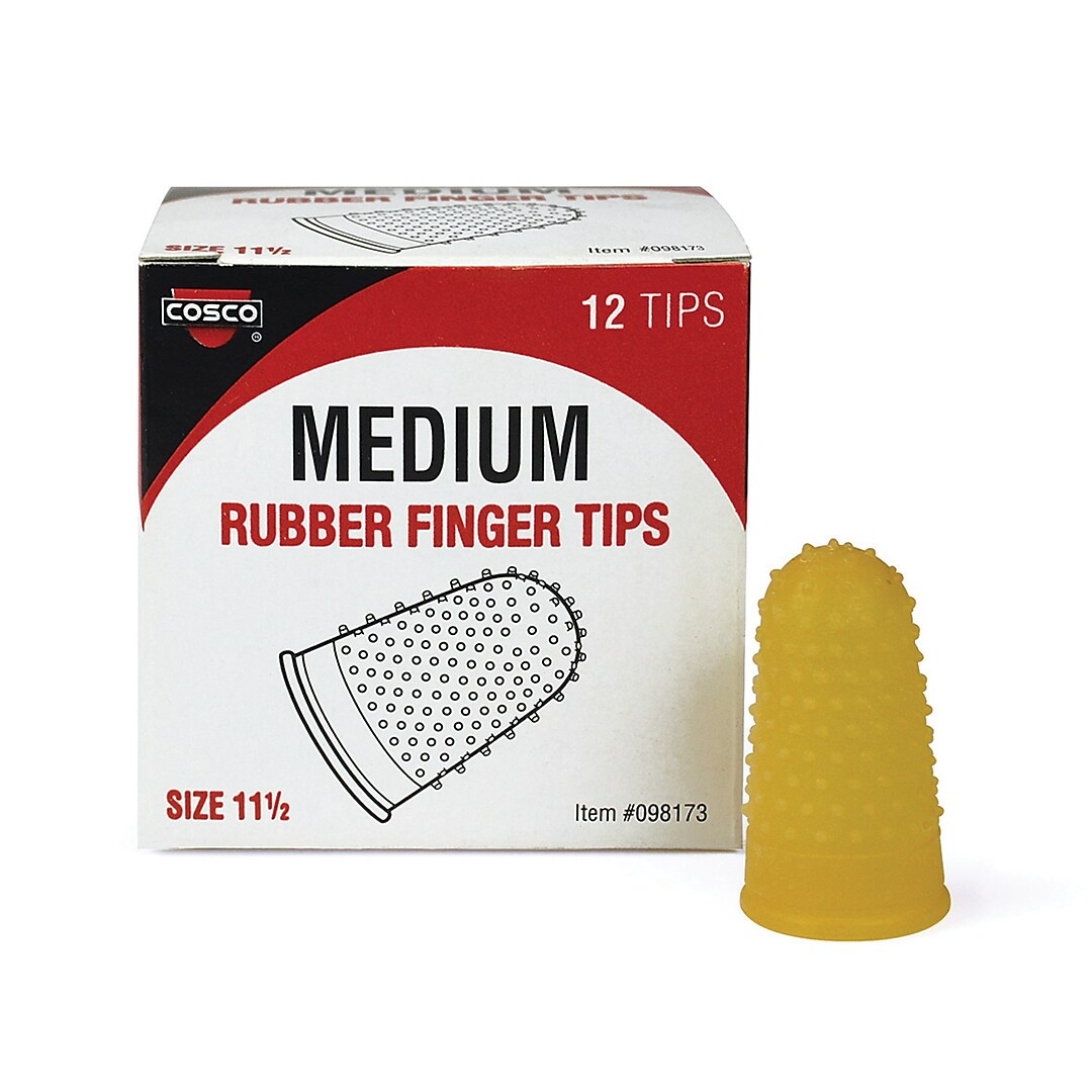 Protect skin from cuts while sorting and counting large stacks of paper by wearing one of these rubber finger pads. Each of these durable pads is ribbed to maintain counting accuracy. These Cosco rubber finger pads feature extra-thick tips to provide extra protection to skin and nails.
