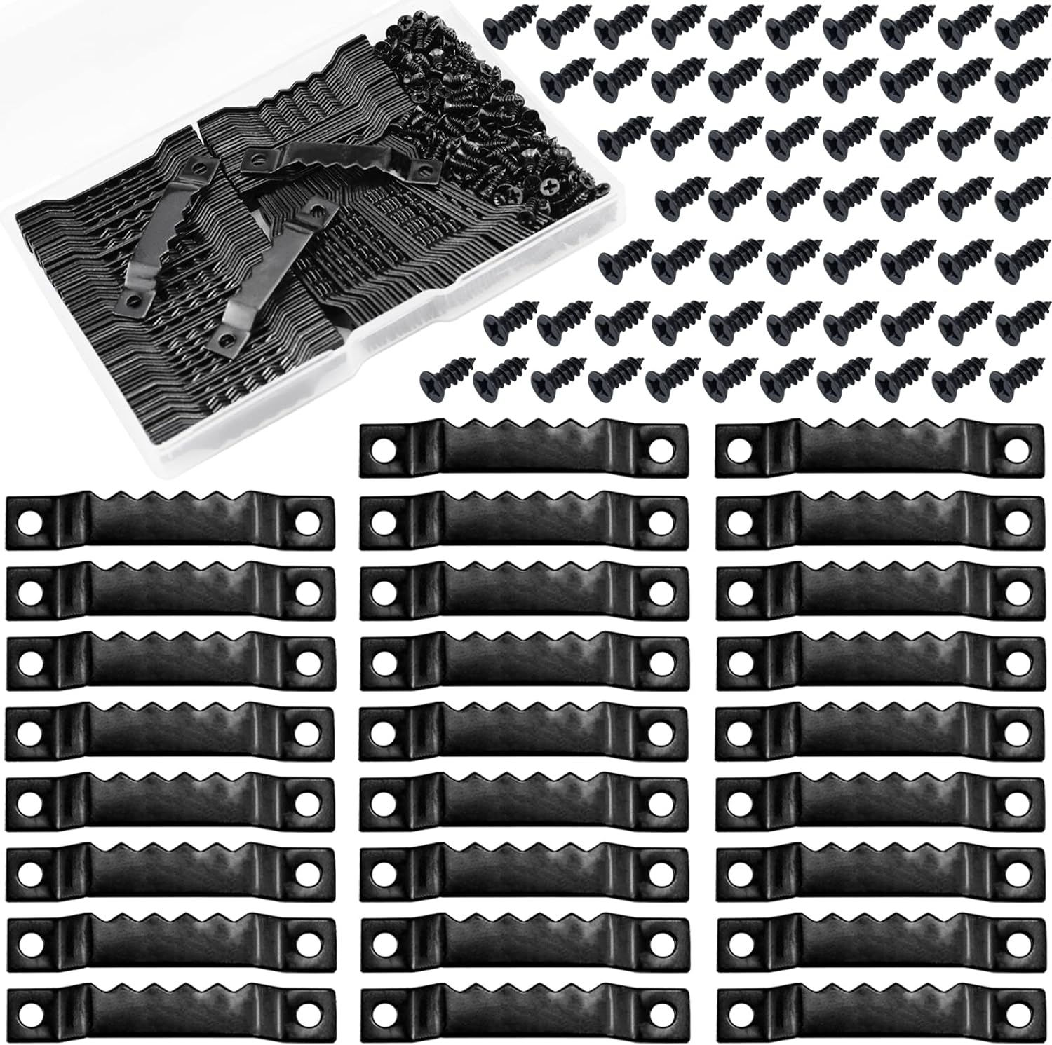 - What You Get: Come with 100 pcs black sawtooth hanging hardware and 200 pcs screws in a plastic box. The hangers work with either soft or hard woods.
