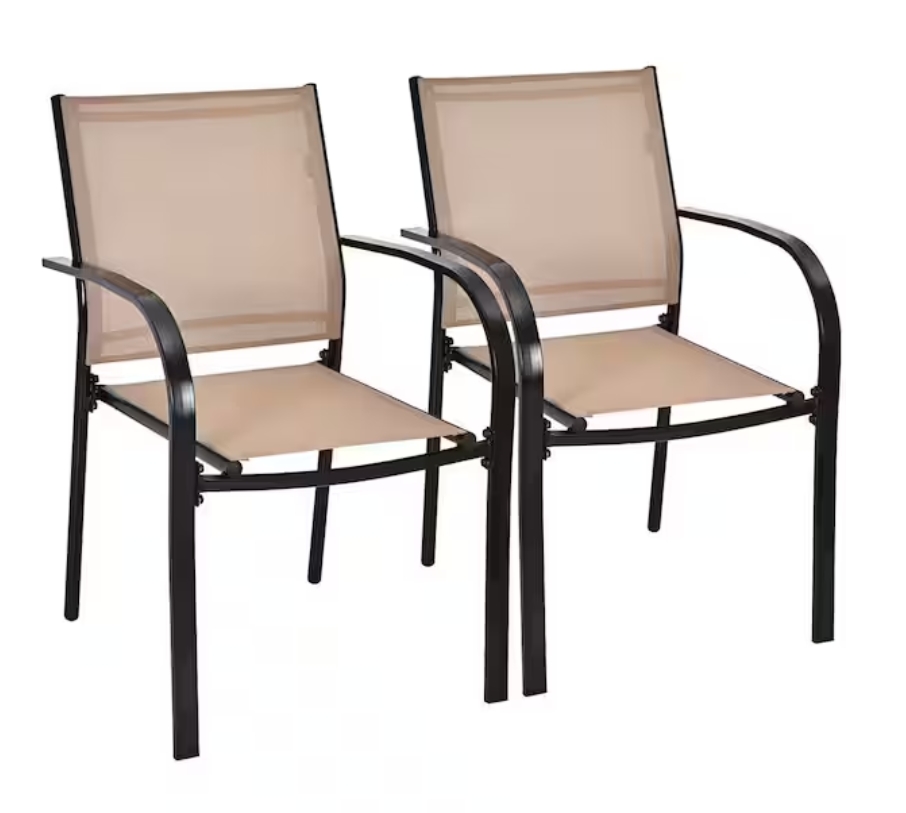 Want chairs that are both comfortable and space-saving How about these 2-pieces patio dining chairs With breathable fabric, curved backrests and ergonomic armrests, these outdoor bistro chairs are comfortable enough to sit on. And they can be stacked when not using them, greatly saving your space. What’s more, the anti-rust steel frame and fast-drying fabric make these patio chairs fit outdoors. So you can place them in different places based on your demands.